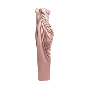 V shape trim detailed draping body strapless maxi dress