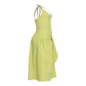 Coastal Flirt Halter Midi Dress with Tie Waist Detail